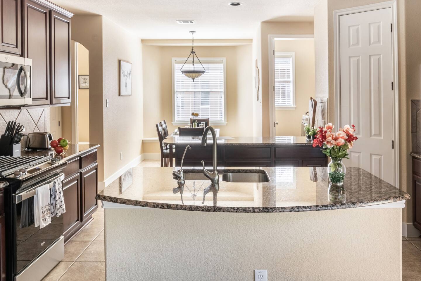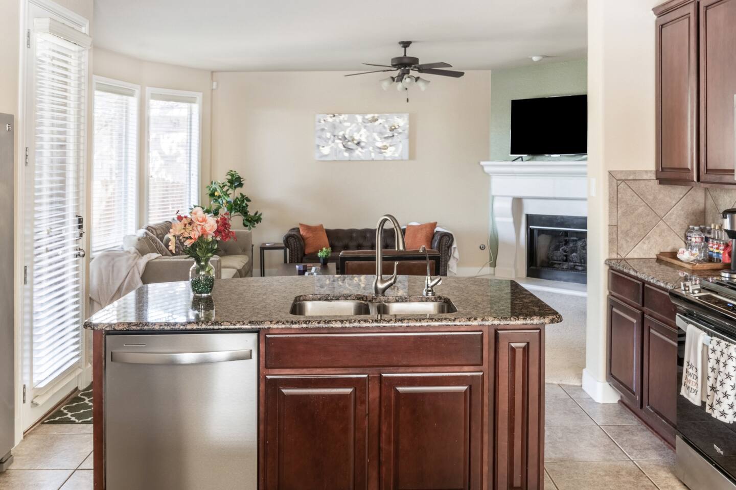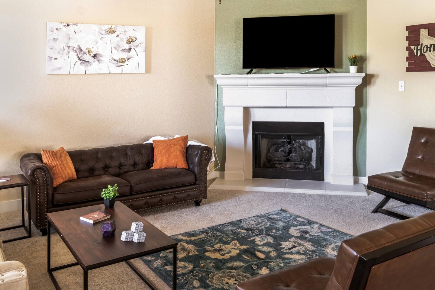 Welcome to your perfect getaway in Georgetown, TX! This beautiful 4-bedroom, 2.5-bathroom home boasts over 3,000 square feet of spacious living, ideal for families and groups. Enjoy the comfort of a family-friendly environment with 1gig Internet and plenty of fun activities, including a Pacman arcade game, 6-in-1 game table, outdoor games, and board games to keep everyone entertained. Nestled in a beautiful serene neighborhood in Georgetown, this home is designed for relaxation, family time, and fun. Up to 10 guests can be accommodated in the bedrooms. 3 of the rooms are upstairs including 2 guest rooms with queen sized beds. In the hall between the two rooms is a bathroom with tub and shower. The Master suite has a king sized Purple® mattress bed and a 2nd queen bed with a Sealy Posturepedic mattress for additional sleepers or for young kids you want to keep nearby. The primary suite also has a large double vanity bathroom with an oversized tub that can easily fit two and a separate shower. The first floor contains 1 bedroom that also doubles as an office. This room is equipped with a queen sized Purple® mattress complete with motorized adjustable bed to lift head or feet for extra comfort. In the living room you will find a a 55” 4k Roku TV and comfortable couches and chairs for relaxation and a gas fireplace with concrete logs. Stream all you want as we also provide 1 gigabit cable internet! On the second floor there is a second living room and game room for family play time that is sure to be popular for the kids. You can enjoy games including a classic-style PacMan arcade game and a 6-in-1 game table with air hockey, ping pong, billiards, foosball, and more. The community pool, just a few blocks away, offers a refreshing escape during the warm Texas days. Located in the charming town of Georgetown, this home provides easy access to numerous attractions and amenities. Explore the rich history, vibrant culture, and beautiful landscapes that Georgetown and the surrounding area have to offer. This quiet retreat is just minutes away from the downtown Georgetown Square, the Round Rock Premium Outlets outdoor mall, several golf courses, a community pool, and be sure to take a tour of the amazing & beautiful Inner Space Cavern. There are plenty of excellent food choices in Georgetown & Round Rock, and you are just 40 minutes from Downtown Austin or the Austin Airport. Amenities that will ensure you have a comfortable stay, by level: MAIN LEVEL: The kitchen is stocked with all the basic supplies you might need including dining ware, glasses, coffee cups, cooking utensils, baking sheets, pots & pans. Kitchen also includes a toaster, blender, refrigerator with ice maker, gas stove, microwave, dishwasher, and coffee-maker with k-cup and drip. There is a breakfast nook off the side of the kitchen with a table and seating for 6. Laundry room with washer & dryer Powder room (half bath) The open floorplan allows visibility from the breakfast nook, to the kitchen, to the living room. Living room with fireplace and 55” Smart Roku® TV At the front of the house is the formal dining area with a table that seats 8 Bedroom/Office contains a desk and a queen size adjustable bed with a Purple® mattress UPPER LEVEL: Primary Suite with 2 beds, a Purple® king & a Sealy Posturpedic queen with connected bathroom with a double vanity, soaker tub, and a shower, and walk in closet. Bedroom with queen sized bed Hall bathroom with tub/shower combo Bedroom with queen sized bed Additional living room and game room with PacMan arcade game and multi-layer 6-in-1 mini-game table, Jenga, deck of cards, and board games. OUTSIDE: Covered back patio with patio set & large back yard. Grill and Barbecue / Grill utensils Yard games including safe axe throwing setup and corn hole. Front patio to soak up the sun in Adirondak chairs. ADDITIONAL AMENITIES: Iron & Ironing Board Long driveway behind the property that can fit RV parking or a boat-in-tow and plenty of street parking. Local community pool (requires payment to access). Front patio area with seating. Tourist Attractions Near Georgetown, TX: - Georgetown Palace Theatre - Live theater and performances. - Blue Hole Park - Scenic lagoon and swimming area. - Inner Space Cavern - Fascinating underground caves. - Lake Georgetown - Boating, fishing, and hiking. - San Gabriel Park - Beautiful park with trails and picnic areas. - Wolf Ranch Town Center - Shopping and dining. - Georgetown Winery - Local wines and tastings. - Southwestern University - Historic university campus. - Berry Springs Park and Preserve - Nature trails and wildlife. - Sun City Texas Golf Club - Premier golfing experience. - Williamson Museum - Local history and exhibits. - Round Rock Premium Outlets - Shopping and discounts. - Old Settlers Park - Large park with sports facilities. - Rock'N River Waterpark - Family water park. - The Georgetown Square - Historic downtown with shops and restaurants. - Andice General Store - Famous for its burgers and local charm. - Cinemark Stone Hill Town Center - Movie theater. - Texas Museum of Science & Technology - Interactive exhibits. - Kalahari- the largest indoor waterpark in the U.S. - Garey Park - Equestrian trails and scenic views. Georgetown is also conveniently located close to Austin, allowing easy day trips to explore the Texas State Capitol, Austin Zoo, and the vibrant nightlife and live music scene that the city is famous for. Whether you're here for a relaxing family vacation or an adventurous exploration, this is your perfect base to experience it all. Book your stay today and create unforgettable memories in Georgetown, TX!